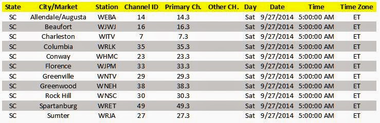 will be playing in your area on Sat. 9/27/14 on these channels: